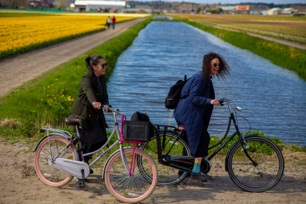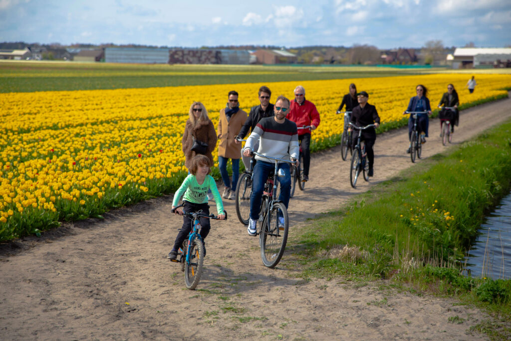There is no better way to explore the typical Dutch landscape than by bike. From mid March to mid May the flower fields and specifically the tulip fields are in bloom and the entire landscape transforms into an ocean of colors, as far as the eye can see. It is a unique opportunity to witness the Dutch landscape at its most beautiful. During the tulip fields bike tour there will be ample stops to take pictures and to create unforgettable memories and very instagrammable photos. Halfway the tour we will take a 20-25 minute break at ‘de Tulperij’ where you can get a local drink, buy souvenirs, eat a delicious syrup waffle or just enjoy the quiet of Dutch rural landscapes.
